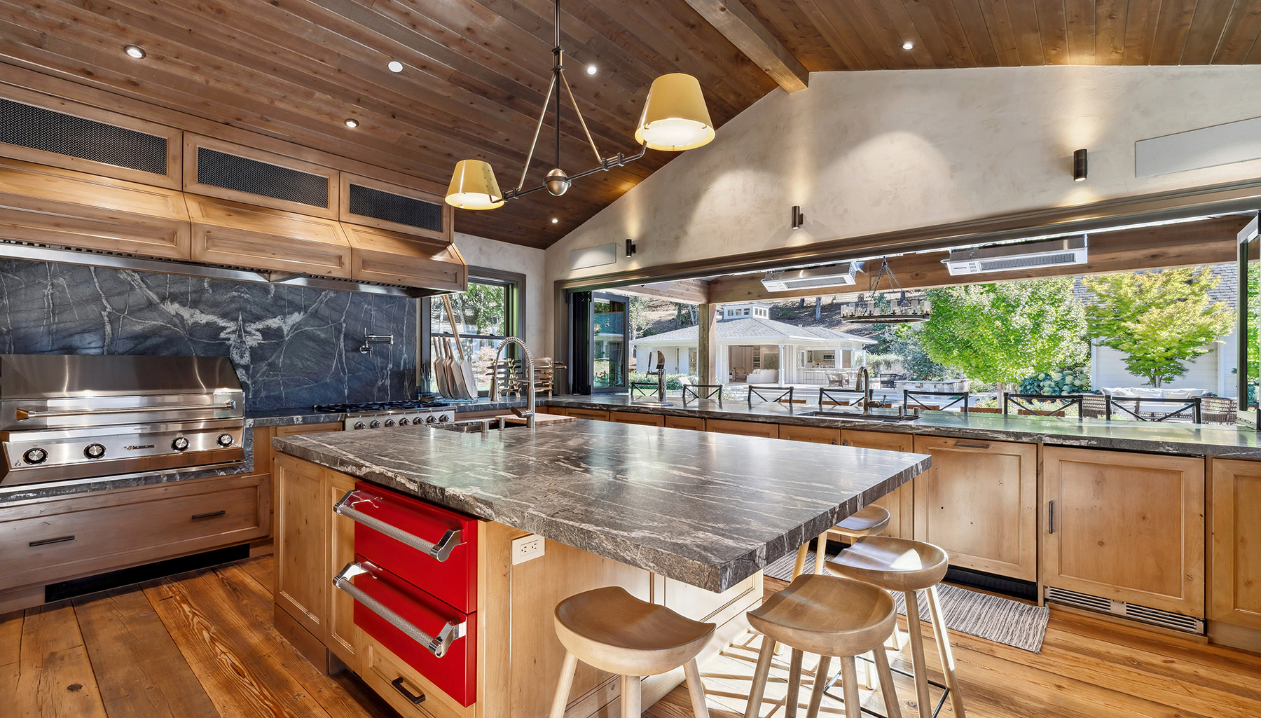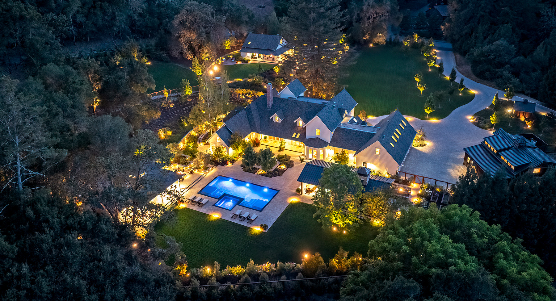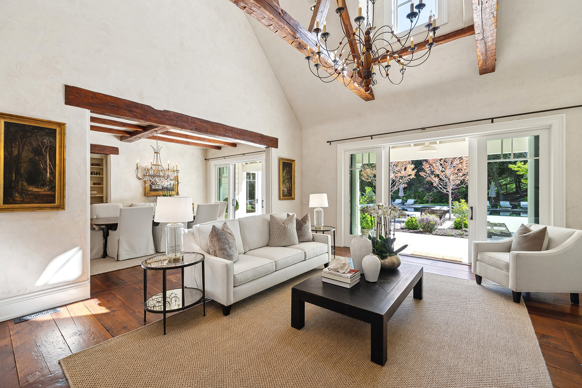 THIS REMARKABLE ESTATE captures the timeless character of classic Northeastern farmhouses with materials almost impossible to source today – mid-1800s water-sawn hardwood floors, hand-hewn beams more than two centuries old, and traditional lath-and-plaster walls. On approximately 3.4 level acres, a thoughtful renovation and expansion by Steve Simpson Architect is complemented by interiors from Monica Cardanini Design and Morgan Raleigh Interior Design. The main home offers four bedrooms, joined by a three-bedroom guest house and a separate one-bedroom apartment. A pool house with full kitchen stands beside the vanishing-edge pool and spa, while a smoke house with indoor barbecue kitchen and elevator to a 6,000-bottle wine cellar with dining for sixteen sets the stage for unforgettable entertaining – all just one-half mile from town with access to acclaimed Woodside Elementary.